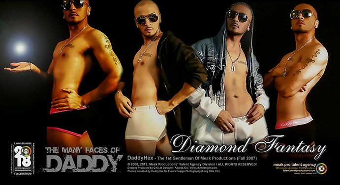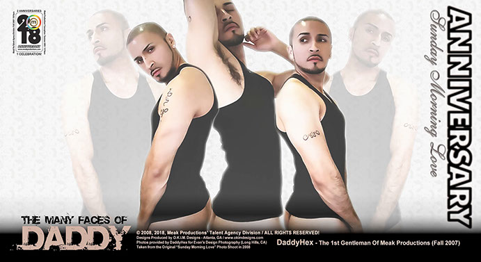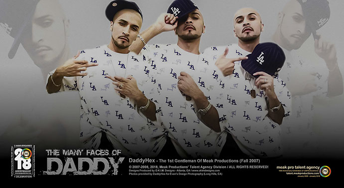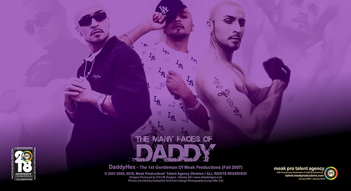 Known by many as the most Googled Latino, and to some others the most infamous, DaddyHexx is nothing to play with when it comes to Talent, Skill and Versatility. He was the 1st male to become Talent of the Month during the 1st Fall Season of Meak Pro Talent Agency in September 2007. He was also the 1st Talent to kick off the preliminary debut of what is now known as our Annual Quarterly Agency Marketing Campaign thanks to a special Halloween photo shoot produced by himself. Born Evan Hernandez and a Native of California, this guy has DONE IT ALL; Modeling, Photography, Singing, Performing, Event Hosting and Adult Entertainment. STAY TUNED For Our NEW Anniversary Video Commentary on DaddyHexx This Fall, and Follow Him on Instagram @daddyent